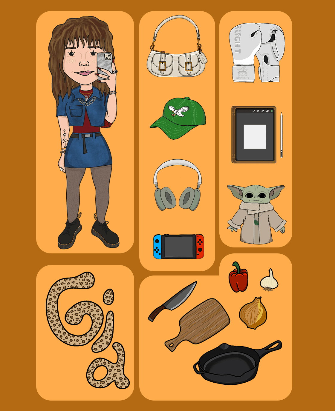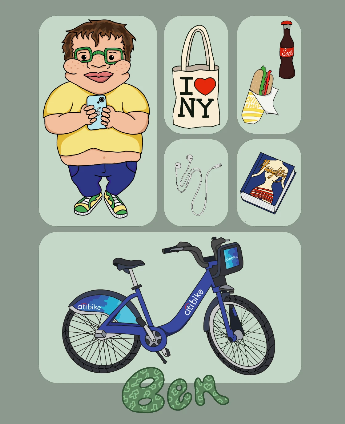 Digital bento boxes of people I know personally or have made up.